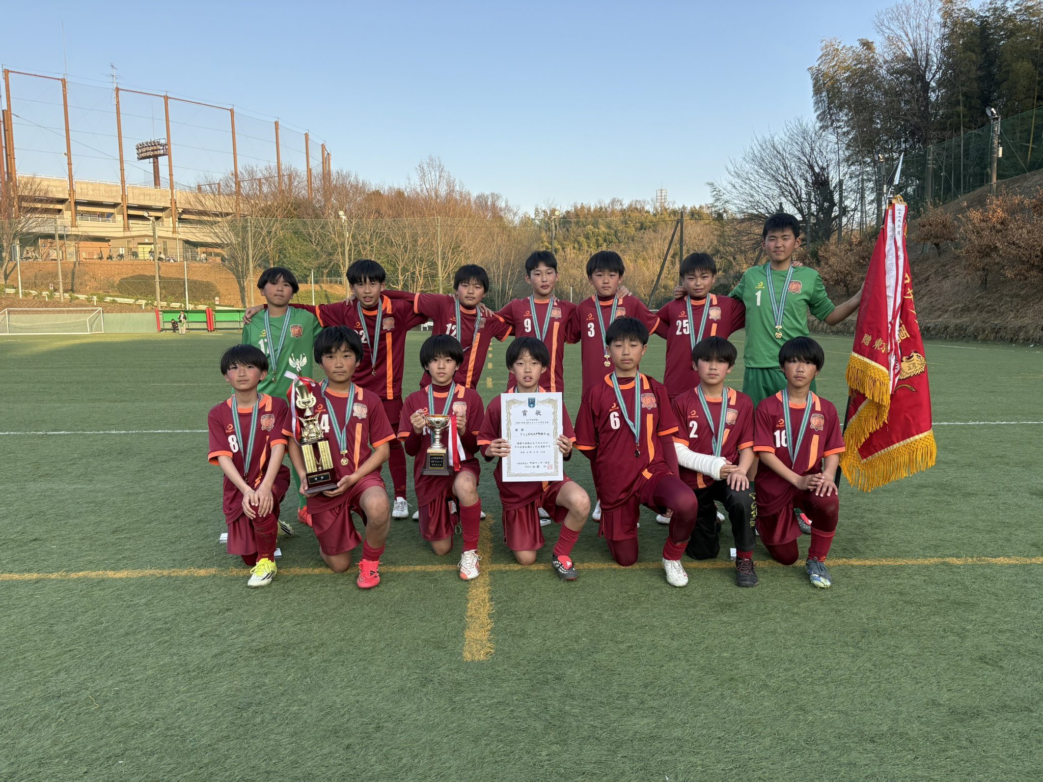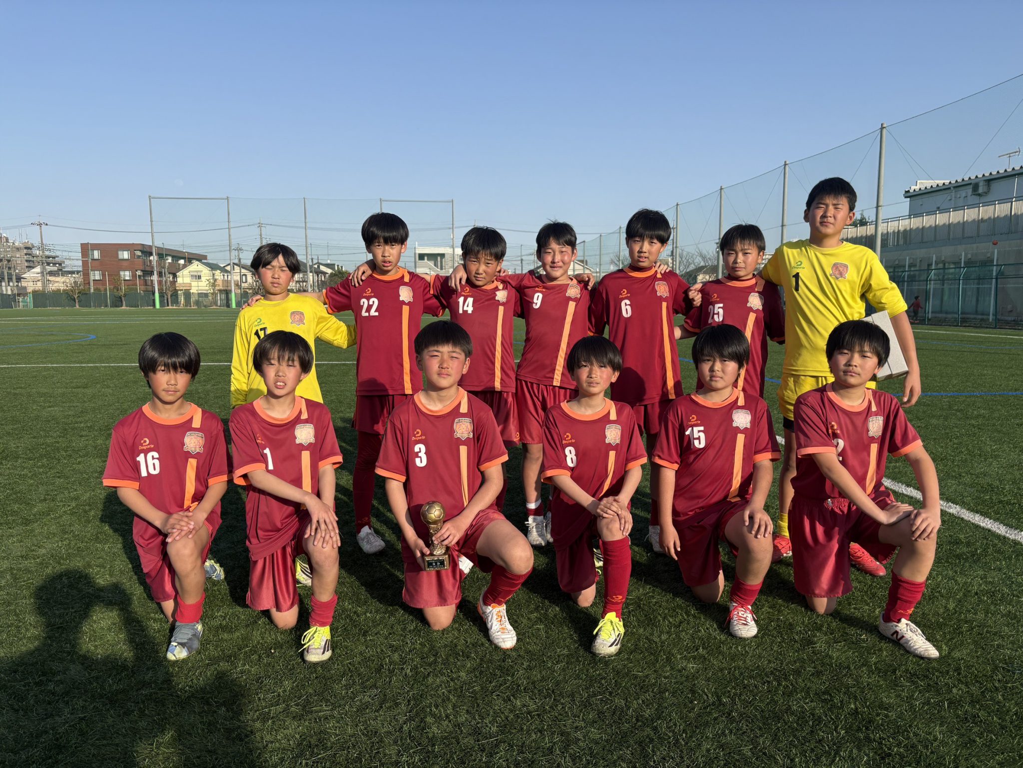HOME > U-12(11期生) 2026.01.12 撮影 ★=公式戦 *=招待試合 日付 大会名 場所 対戦チーム スコア 勝敗 備考 リンク 2026/01/18 (日) 練習試合 和田公園 鶴牧SC 2-0 〇 20分1本 3-0 〇 0-1 × 4-0 〇 1-1 △ 0-1 × 1-0 〇 2026/01/12 (月・祝) *立川市サッカー協会招待 真如マーヤ芝生広場 FC LEGARE 0-2 × 20分ハーフ 準優勝! 立川九小SC 0-0 PK(3-2) 〇 Tachikawa elf FC 2-1 〇 2026/01/10 (土) *立川市サッカー協会招待 砂川中央地区多目的運動場 立川FC AZZURRO 3-0 〇 予選リーグ 20分ハーフ 1位 武蔵いずみAFC 2-0 〇 WAKABA FC立川 8-1 〇 2025/12/27 (土) *アベリア感謝カップ 昭和公園陸上競技場 富士見SS 2-1 〇 3決 国立SSS 0-1 × 1位トーナメント S.T.FC 6-0 〇 予選リーグ 12分ハーフ 1位 羽衣一SC 0-0 △ 2025/12/21 (日) 練習試合 丸子橋第3G 川崎ウィングス 0-2 × 15分1本 3-0 〇 4-0 〇 20分1本 1-0 〇 DURO調布 1-0 〇 15分1本 1-0 〇 0-0 △ 20分1本 0-1 × 2025/12/13 (土) 練習試合 相模原レクリエーションパーク 清新SSS 2-2 △ 20分ハーフ 5-2 〇 15分3ピリオド 2025/12/06 (土) *中央大学杯 高尾 6-1 〇 優勝! MTO 4-0 〇 国立SSS 1-0 〇 WAKABA FC 5-0 〇 2025/11/26 (水) ★MFAフットサルリーグ 町田市総合体育館 MG 6-0 〇 10分ハーフ 芹が谷 12-0 〇 2025/11/23 (日) 練習試合 小柳小 小平8小アベリアFC 0-0 △ 15分1本 1-0 〇 20分1本 6-0 〇 小柳小まむし坂SC 2-0 〇 15分1本 1-0 〇 20分1本 1-1 △ 2025/11/22 (土) 練習試合 旧すすき野小 MITA SC 4-1 〇 20分1本 3-0 〇 0-0 △ 青葉FC(横浜) 3-0 〇 1-1 △ 2-1 〇 2025/11/03 (月・祝) ★全日本U12選手権東京都中央大会 赤羽スポーツの森公園 FC85オールスターズ 2-3 × 20分ハーフ 2025/11/01 (土) ★全日本U12選手権東京都中央大会 小石川運動場 ジュニアコスモス城北 2-0 〇 20分ハーフ 2025/10/25 (土) 練習試合 中野多目的広場 FC MAT 3-0 〇 20分ハーフ 1-0 〇 20分1本 0-0 △ 1-0 〇 2025/10/13 (月・祝) ★全日本U12選手権11B大会 稲城長峰VF FC町田ゼルビアJr. 0-0 PK(3-1) 〇 20分ハーフ 優勝! 中央大会進出 成瀬SC 7-1 〇 FC SEISEKI 4-1 〇 2025/10/12 (日) ★全日本U12選手権11B大会 南多摩G 相原FC 6-0 〇 20分ハーフ 2025/10/04 (日) 練習試合 多摩市旧図書館G FC多摩Jr. 0-0 △ 20分1本 0-3 × 0-4 × 0-0 △ 1-2 × 0-0 △ 2025/09/28 (日) ★リハウスリーグ後期1部 後田G 鶴牧SC 2-0 〇 20分ハーフ 1部優勝! 成瀬SC 3-0 〇 2025/09/27 (土) 練習試合 デジタルハリウッド大学八王子キャンパス 東八王子FC 4-0 〇 20分1本 2-0 〇 4-1 〇 4-0 〇 4-0 〇 1-0 〇 3-0 〇 4-1 〇 2025/09/24 (水) ★MFAフットサルリーグ 町田総合体育館 小川 5-2 〇 10分ハーフ 南大谷 2-0 〇 2025/09/21 (日) ★リハウスリーグ後期1部 南多摩G 若葉台FC 5-2 〇 20分ハーフ 本町田FC 6-0 〇 2025/09/15 (月・祝) 練習試合 相模原ギオンスクエア 鶴牧SC 3-1 〇 15分ハーフ 清新SSS 7-0 〇 南JFC 0-1 × 中野島FC 3-0 〇 2025/09/14 (日) ★リハウスリーグ後期1部 後田G 青葉FC 6-1 〇 20分ハーフ 町田JFC-B 3-1 〇 2025/09/07 (日) ★リハウスリーグ後期1部 後田G トリプレッタ町田 5-0 〇 20分ハーフ FC SEISEKI 2-1 〇 2025/08/31 (日) *和魂SC CUP 大泉中央公園陸上競技場 ガナドールFC 7-1 〇 15分ハーフ 優勝! FC WiLLD 5-0 〇 和魂SC 1-1 △ FCトレーロス 1-0 〇 2025/08/30 (土) 練習試合 三鷹七小 三鷹七小キッカーズ 1-0 〇 20分1本 1-0 〇 0-0 △ 2-0 〇 1-0 〇 1-0 〇 2025/08/25 (月) *草津温泉カップ 本白根G STREGARE 0-1 × 15分ハーフ 準優勝! FCレパード 1-1 PK(4-3) 〇 2025/08/24 (日) *草津温泉カップ 本白根G FCレパード 4-0 〇 FM 15分ハーフ GROW FC 6-0 〇 犬蔵SC 2-0 〇 X FC 7-0 〇 20分ハーフ FC WiLLD 5-0 〇 2025/08/23 (土) *草津温泉カップ 犬蔵SC 0-2 × FM 20分1本 FC WiLLD 1-0 〇 STREGARE 4-2 〇 犬蔵SC 6-0 〇 2025/08/20 (水) *三鷹FC招待 三鷹市大沢総合G 大森FC 2-0 〇 15分ハーフ 優勝! team NEO REVO 4-1 〇 三鷹FC 2-1 〇 MITA SC 1-0 〇 和田ブルドッグSC 5-0 〇 2025/08/03 (日) 練習試合 下福田スポーツ広場 GEO-X FC 0-0 △ 15分1本 2-0 〇 1-0 〇 0-1 × 20分1本 2-0 〇 2025/07/31 (木) *SCHカップ アルビンスポーツパーク 柏レイソルAA長生 4-0 〇 20分1本 準優勝! SCH FC-B 6-0 〇 SCH FC-S 1-0 〇 SCH FC-W 1-0 〇 新座片山FC 2-3 × 2025/07/27 (日) 練習試合 小平市中央公園G 小平8小アベリアFC 2-1 〇 25分1本 4-0 〇 リバティーFC 2-0 〇 10分1本 3-0 〇 25分1本 3-0 〇 2025/07/21 (月・祝) 練習試合 北見方少年サッカー場 川崎ウィングスFC 0-1 × 15分1本 1-2 × 1-0 〇 0-0 △ 0-0 △ 0-0 △ 1-0 〇 1-0 〇 3-0 〇 1-0 〇 2-0 〇 0-0 △ 2025/07/16 (水) ★MFA フットサルリーグ 町田市立総合体育館 境川イレブン 8-0 〇 10分ハーフ ブルファイトB 6-1 〇 2025/07/13 (日) *さぎぬま招待 西長澤公園第2G 駒林SC 0-2 × レオA さぎぬまSC 2-3 × FM 1-0 〇 レオB 1-1 △ FM 2025/07/12 (土) 練習試合 鹿島小 東八王子FC 2-2 △ 0-2 × 2-1 〇 0-1 × 3-0 〇 2-0 〇 2-0 〇 2025/07/06 (日) *七夕カップ ジャーニー土合G 鶴牧SCヤンキース 1-1 PK(2-0) 〇 下位トーナメント 3位 15分ハーフ NW FC 2-2 PK(1-3) × 鶴牧SCカブス 10-1 〇 神栖クラブB 2-1 〇 FM ★バーモントカップ 東京都予選 駒沢屋内球技場 トリアネーロ町田 3-7 × 準決勝 15分ハーフ 第3位! 二子玉川SSS 3-1 〇 15分ハーフ 2025/07/05 (土) *七夕カップ ジャーニー土合G 鑓水 2-2 △ 1次リーグ 15分ハーフ 予選3位 松原FC 1-0 〇 鶴牧SCドジャース 1-2 × 中国杭州SC 4-0 〇 FM 2025/06/28 (土) 練習試合